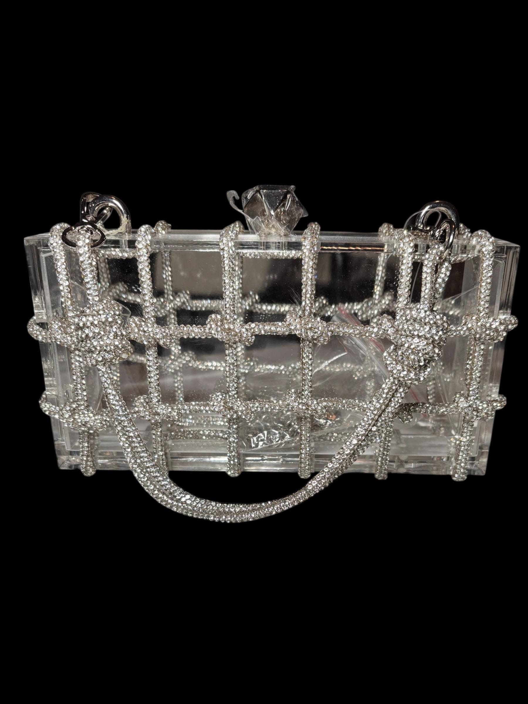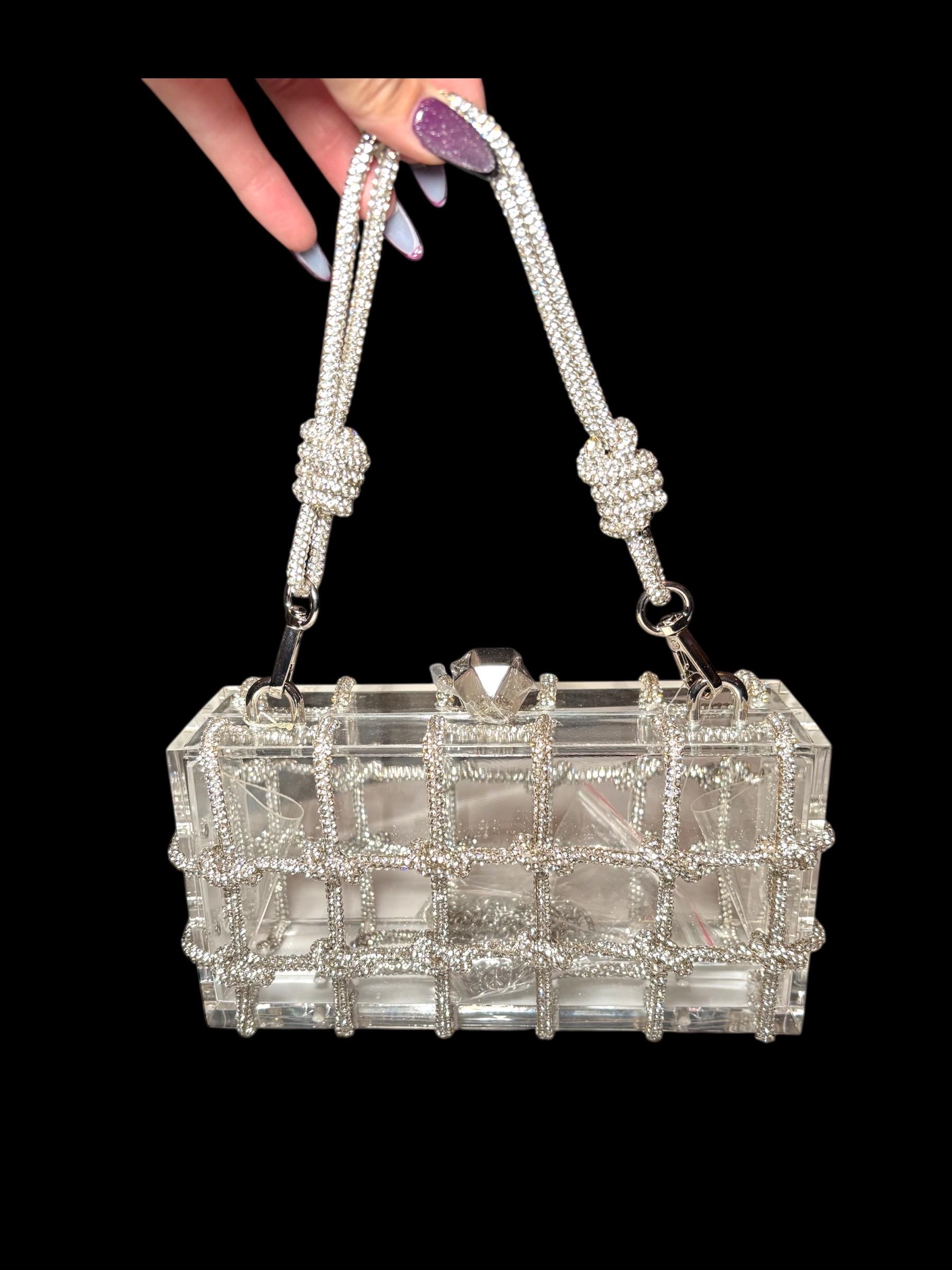 silver rhinestone rope CLEAR EVENING BAG with Gold strap for crossbody or shoulder bag