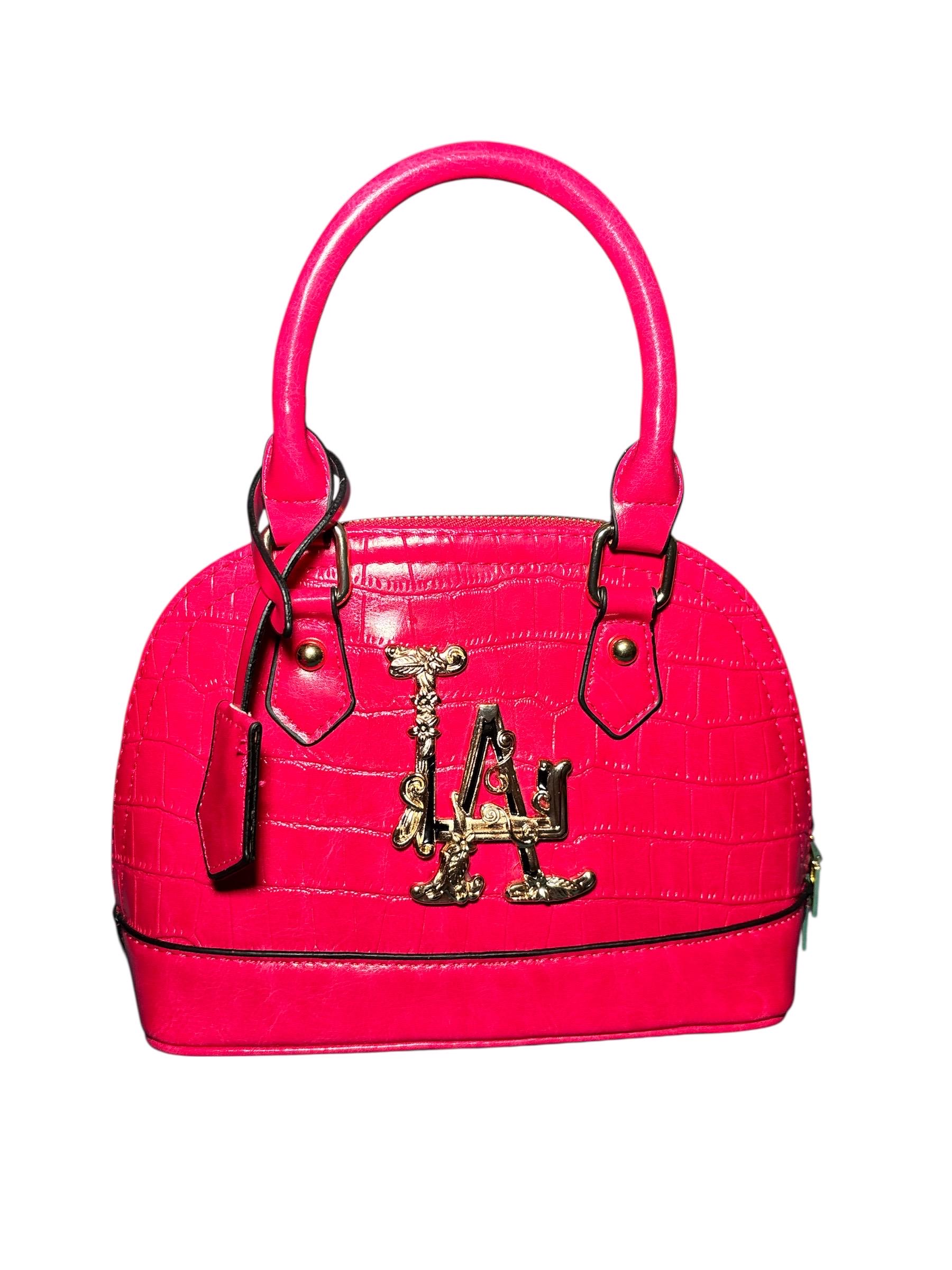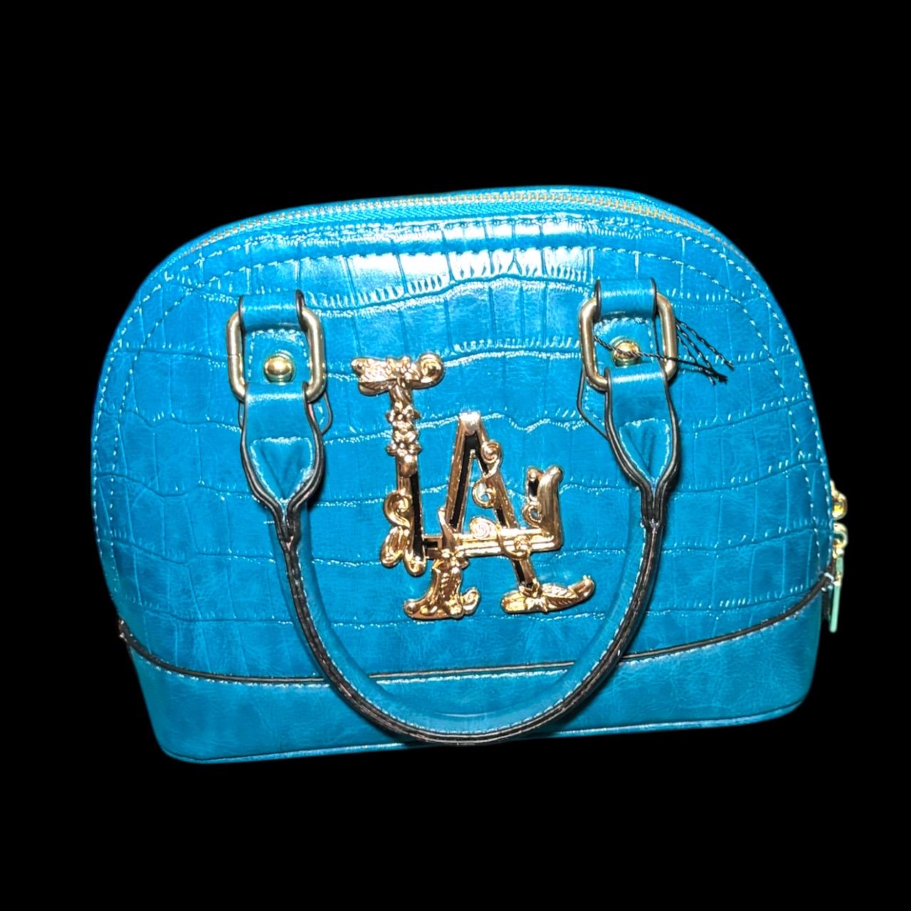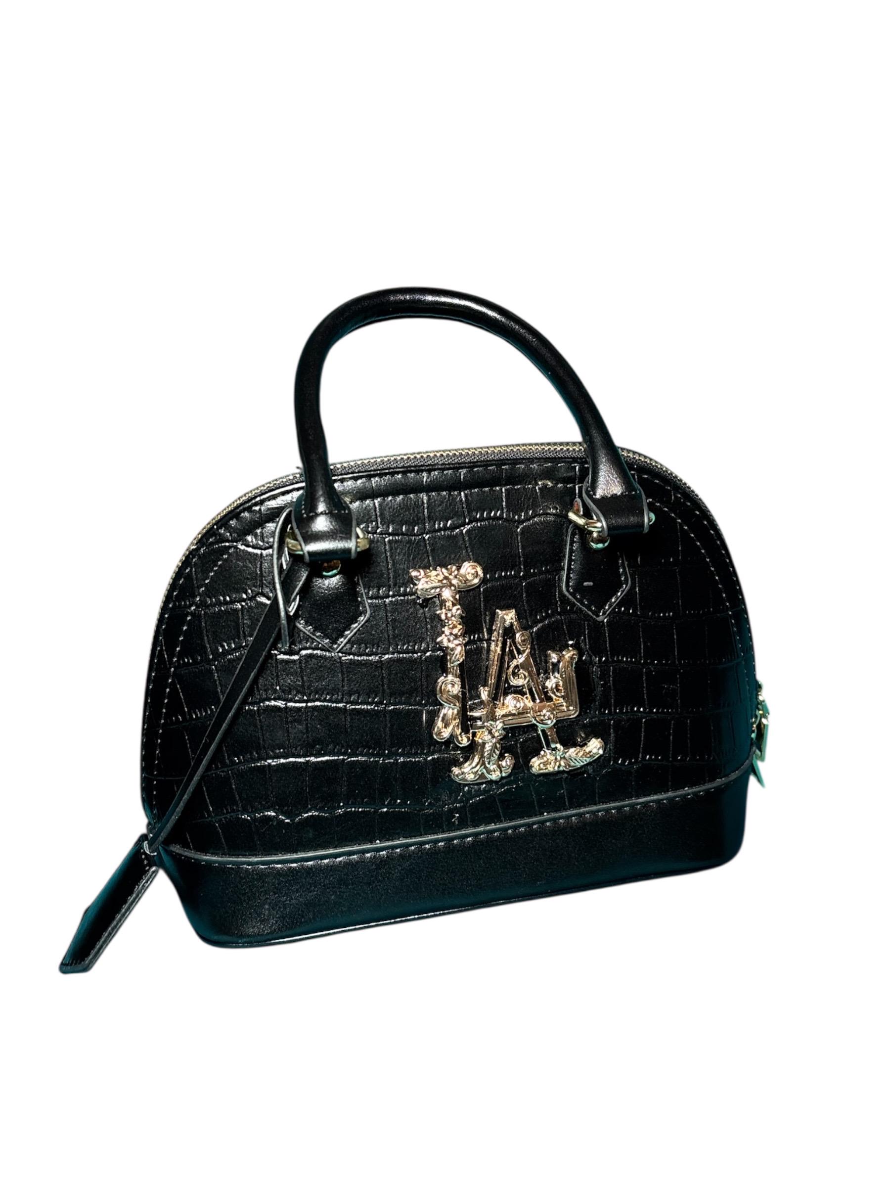 LA baroque style logo on croc handbags with crossbody strap